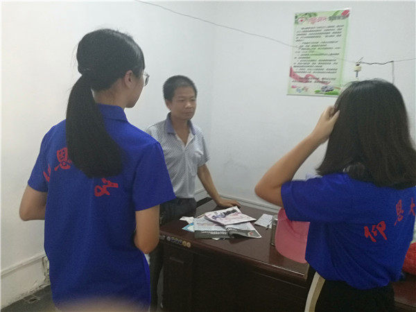 当天上午,实践队员驱车来到环卫工人爱心驿站,自费买了水和解暑的药物送给爱心驿站。实践队员向驿站负责人了解驿站的运营情况,帮忙整理驿站卫生,并向环卫工人分发解暑药物。同时,实践队还进行了视频采访,利用微博、微信等方式,呼吁大家尊重环卫工人的劳动成果,共创美好家园。期间,实践队还对坝下溪进行第三次勘察,了解坝下溪周边环境状况,在实践队的环保宣传下是否有所改善。