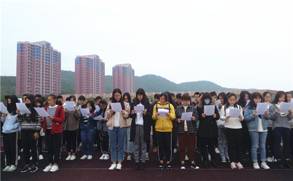 为深入贯彻落实党的十九大精神,加强宪法教育,12月5日早上,m豆传媒星空无限17级全体新生在第三教学区操场举行了晨读宪法活动。