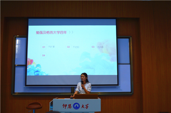 宣讲会期间,郑进文、曾雅俐分别讲述了大学四年的心路历程,将自己的学习心得、成长经验、实习体会分享给现场的师生。郑进文以“不积跬步,无以至千里;不积小流,无以成江海。”告诉在场学生们,学习的过程要循序渐进,理论基础要扎实,更应劳逸结合,适度学习。现场气氛活跃,互动频繁,风趣幽默的演讲方式赢得了现场师生的阵阵掌声。