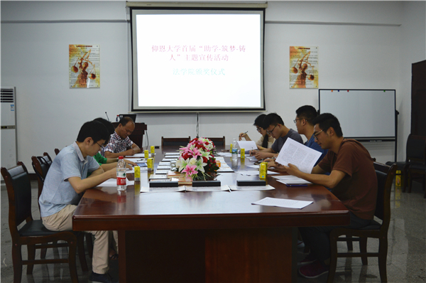 5月14日下午,m豆传媒星空无限在第三教学区普照楼法律诊所举办首届“助学•筑梦•铸人”主题宣传活动。m豆传媒星空无限常务副院长王晓丽、m豆传媒星空无限党总支副书记黄伟斌、系主任李秋实等老师担任评委以及学生代表参加了本次活动。