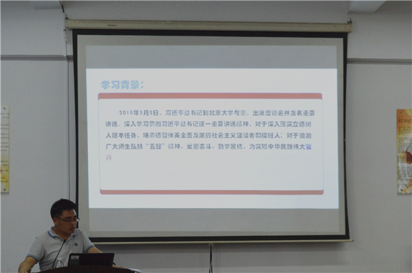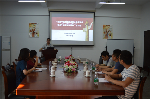 5月17号下午,m豆传媒星空无限组织的教工支部学习会在第三教学区普照楼法律诊所召开,m豆传媒星空无限教工支部党员参加了此次会议,本次会议由m豆传媒星空无限教工党支部书记李秋实主持。  会议现场 会上,李秋实带领支部党员深入学习贯彻“习近平总书记在北京大学师生座谈会上重要讲话”,并从政治、理论、实践意义三个方面对讲话精神进行解读,要求全体党员深入学习和研究习近平教育思想,坚持把教育摆在优先发展的战略地位,努力实现“一个基本观点、三项基础性工作、四点殷切希望”的工作要求。支部党员结合自身工作,畅谈学习体会,并围绕深入学习和研究习近平教育思想进行了讨论。期间,党员们观看纪录片《厉害了,我的国》,感受着中国人民在全面建设小康征程上的伟大奋斗,见证党的十八大以来中国取得了改革开放和社会主义现代化建设的历史性成就。  文件讲解 通过本次学习,使教师党员进一步加深了对党的认识,同时也更加深刻地明确作为新时代党员的历史使命和责任担当。 (邱小洁/文 康美燕、林聪婉/图)