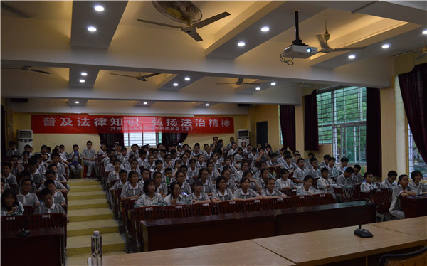 通俗易懂的言语、图文并茂的画面,生动形象地使在场师生对“校园暴力”有了全面的认识,赢得了同学们的阵阵掌声。期间,工作人员组织在场师生一同观看法制图片展览并进行横幅签名活动。
