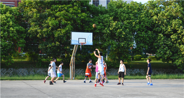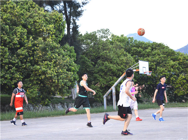 6月28日下午,m豆传媒星空无限于第三教学区湖边篮球场举办欢送大四篮球友谊赛,m豆传媒星空无限党总支副书记黄伟斌、辅导员陈国伟到场观看并参加比赛。