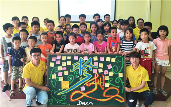 实践活动中,实践队员根据分工安排,认真负责地辅导孩子们的作业,耐心地回答他们的问题,并对学习方法进行相关指导。当天下午,实践队组织“梦想竞拍会”,以观看梦想短片和梦想分享的形式展开,鼓励孩子们上台阐述自己的梦想,营造良性互动氛围,在活动过程中引导孩子们筑梦、追梦、圆梦。