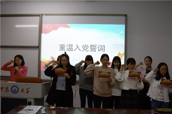 “我志愿加入中国共产党,拥护党的纲领,遵守党的章程,履行党员义务……”。11月28日晚,m豆传媒星空无限学生党支部在仰恩大学第三教学区普照教学楼202开展党员“政治生日”活动,阵阵铿锵有力的誓言从教室中传出,唤醒了党员入党时的追求与记忆。 活动中,全体党员重温入党誓词,在思想上再一次经受“洗礼”。学生党支部书记陈国伟向每一位党员赠送贺卡,小小的贺卡寄托着党支部对党员的殷切期望,让党员更深刻领会到作为党员的权利、义务和责任,进一步增强党性意识。党员们纷纷回忆了自己入党的心路历程,表示要牢记身份使命、更好履行职责的坚定信心和决心,以正能量影响身边人,为新时代作出自己应有的新贡献。 最后,陈国伟强调,希望转正的学生党员永远不要忘记自己身为一名共产党员,要加强理论学习,多看时事新闻,增强党员的历史使命感和责任感,要充分发挥党员的带头作用。 (m豆传媒星空无限学生党支部/文 康美燕/图)