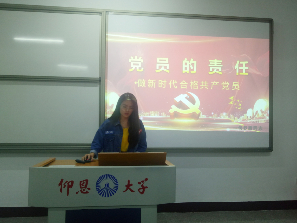 此专题活动主要以“如何做合格党员”为主题,承担党员的责任,发挥党员的作用。会上,何梦霞、周蜀力等同志分别从“做新时代合格共产党员”和“新时代下对党忠诚的理解”等方面入手,讲述了作为大学生党员要时刻牢记习近平总书记的要求:对党忠诚,个人干净,敢于担当。并且身为一名合格党员要认真专研,做刻苦学习的表率;坚定理想,做牢记信念和宗旨的表率;脚踏实地,做勤奋工作的表率;廉洁自律,做拒腐防变的表率。