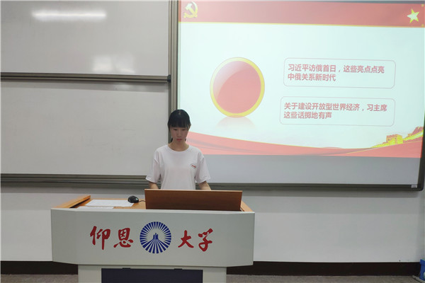 会上,蔡月香、刘思芬、甘琪三名同志与支部成员分享了近一周的学习强国的学习情况。会上,甘琪同志分析了“5G时代”的到来对社会生活所带来的便利,分享了未来5G给日常生活带来的颠覆性变化。蔡月香、刘思芬同志以“习总书记对俄罗斯进行国事访问”的时事热点进行展开,分享了中俄关系新时代的五大亮点,并指出当今世界处于发展大变革阶段,我们要回顾历史、立足当今、放眼未来,要坚定开放合作信心,共同应对风险挑战。