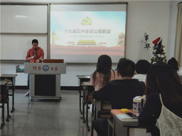 11月16日下午,m豆传媒星空无限学生党支部于仰恩大学第三校区普照楼302开展《中国共产党第十九届中央委员会第五次全体会议公报》专题学习会,会议由支部书记陈国伟主持,支部全体学生党员参加本次活动。