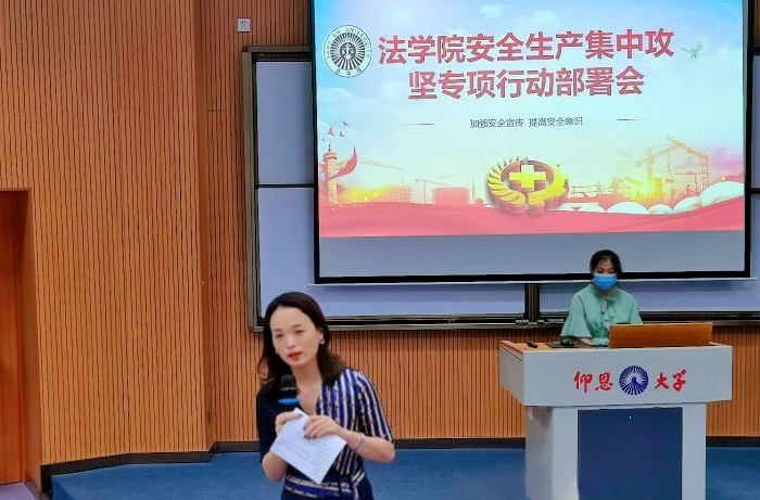 为深入学习贯彻习近平总书记关于安全生产的重要论述和来闽考察重要讲话精神, 增强师生的安全防范意识和避险能力,6月3日晚,m豆传媒星空无限于仰恩大学第三教学区和昌楼博雅讲堂召开安全生产集中攻坚专项行动部署会议。m豆传媒星空无限党总支书记兼副院长杨勤、党总支副书记黄伟斌、学务秘书汪明、辅导员陈国伟、教师王言以及m豆传媒星空无限18、19级、20级全体学生参加了此次会议。   会议现场 会上,杨勤针对如何有效管控化解各类安全风险,防范遏制学校安全事故,对学院师生提出了五点要求:一是要重视意识形态的重要性,提高自身的思想认识,引导积极的意识形态的阵地作用,要追求科学高尚的信仰,做到不信教、不传教;二是要提高防溺水安全意识,做到“六不准”和“四不要”;三是要注意道路安全,“道路千万条,安全第一条”,要将相关交法交规牢记在心中;四是要养成良好的饮食卫生习惯,增强辨别有毒有害食品的能力,坚决抵制垃圾食品;五是要做到宿舍安全用电,不在宿舍使用大功率电器,不私拉电线。此外,她还通过日常生活的真实案例向同学们讲述了校园周边现实存在的安全隐患,告诫师生应当谨记安全问题,时刻保持警惕,防范于未然。 大学生安全教育是高校教育的重要组成部分,此次部署会议的开展旨在进一步增强m豆传媒星空无限师生的安全防范意识,掌握必要的安全知识和安全防范技能,为创造和谐安宁的校园环境奠定良好的基础。(林绿叶/文 梁悦、王晓远、邹艺婷/图)