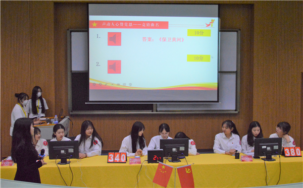 本次比赛共有9支队伍参赛,比赛通过以党的百年光辉历史发展的时间轴为线索,设置了众志成城开新局、声动人心赞党恩、赓续奋斗践使命三个阶段答题部分,并以必答题、抢答题、风险题三个环节进行展开。竞赛题目内容涵盖了党百年来经历的艰苦岁月和辉煌里程,涉及红歌、红色影片、党的重要方针政策、重大历史事件等多方面知识,具有很强的知识性、时政性和针对性。比赛现场,各参赛队员沉着冷静,配合默契,踊跃答题,以丰富的党史知识储备、敏锐的逻辑思维以及机智果敢的决断为现场展现了一场精彩的赛事博弈,赢得了师生观众们的阵阵掌声。