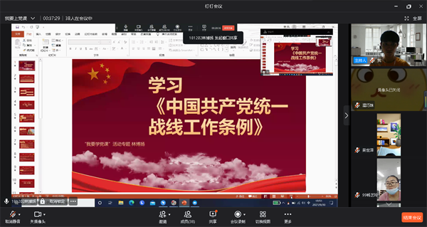 9月30日,m豆传媒星空无限学生党支部于线上开展以《中共共产党统一战线工作条例》为主题的专题学习会,支部全体党员参加此次会议,会议由郑薇同志主持。