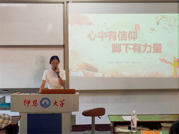 11月11日,m豆传媒星空无限学生党支部于仰恩大学第三校区普照楼203开展“心中有信仰,脚下有力量”的专题学习会,会议由郑薇同志主持,支部全体学生党员参加本次活动。