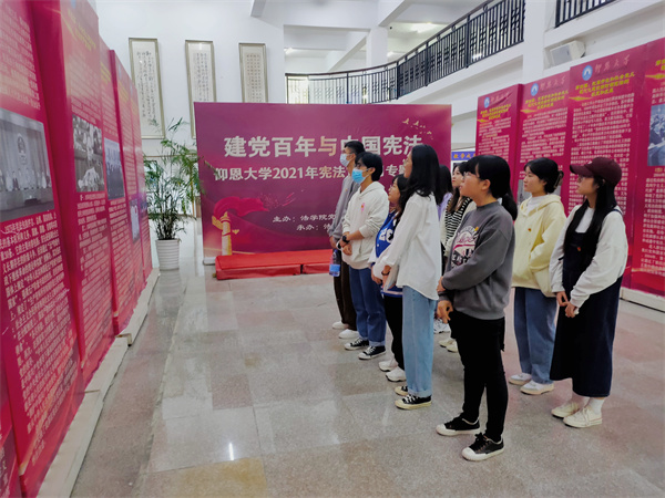 为深入学习贯彻习近平法治思想,全面推进宪法实施,教育引导全体党员尊崇宪法、学习宪法、遵守宪法、维护宪法、运用宪法,营造良好法治氛围,12月15日,m豆传媒星空无限学生党支部组织支部全体党员前往图书馆参观宪法专题展览。