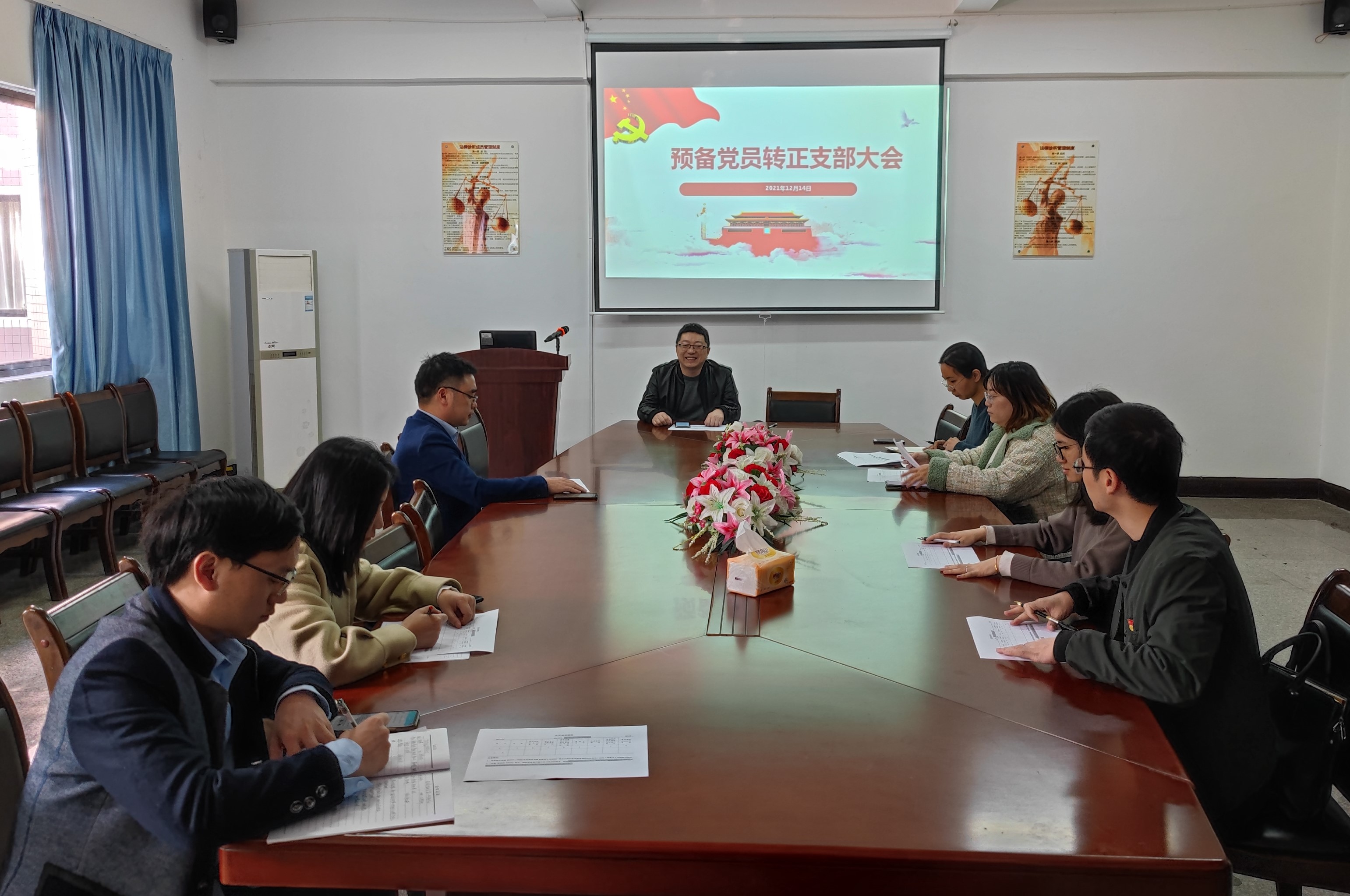 12月15日下午两点,m豆传媒星空无限教工党支部预备党员转正大会在普照楼法律诊所顺利举行。本次大会主要围绕“接受新党员﹑发展预备党员”这一主题而召开,大会由m豆传媒星空无限教工党支部书记黄文伟老师主持,参加此次大会的有m豆传媒星空无限教工党支部的各位党员。