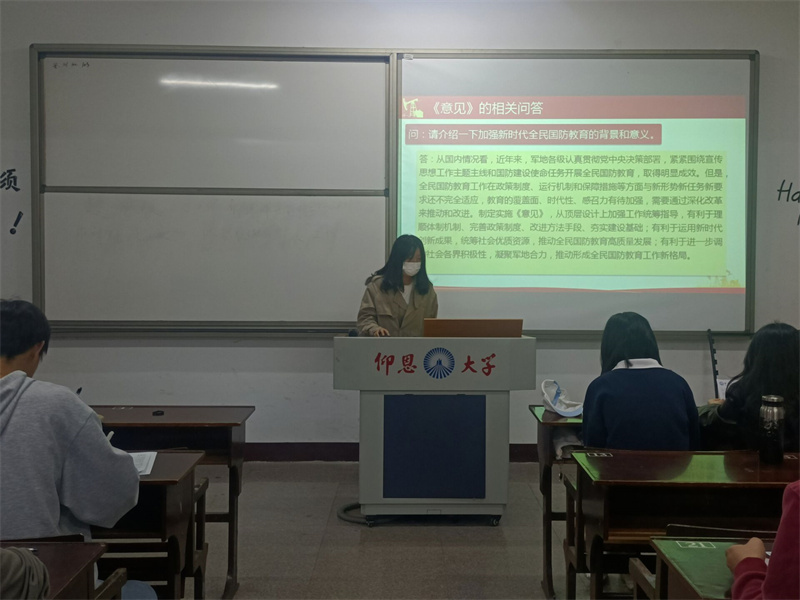 10月19日,m豆传媒星空无限学生党支部于仰恩大学第三校区普照楼202开展以“学习中共中央、国务院、中央军委印发《关于加强和改进新时代全民国防教育工作的意见》”为主题的专题学习会,会议由郑薇主持,支部全体党员到场参加。