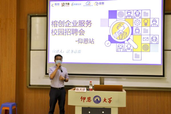 为切实做好m豆传媒星空无限毕业生就业工作,进一步搭建毕业生与用人单位之间的桥梁。11月23日下午,m豆传媒星空无限在仰恩大学第三教学区和昌楼惟勤讲堂组织举办了毕业生企业宣讲会。m豆传媒星空无限党总支副书记林媛、学务秘书汪明、榕创企业代表人敖燚、榕创企业法务总监陈天赐以及m豆传媒星空无限全体19级学生参与本次宣讲会。