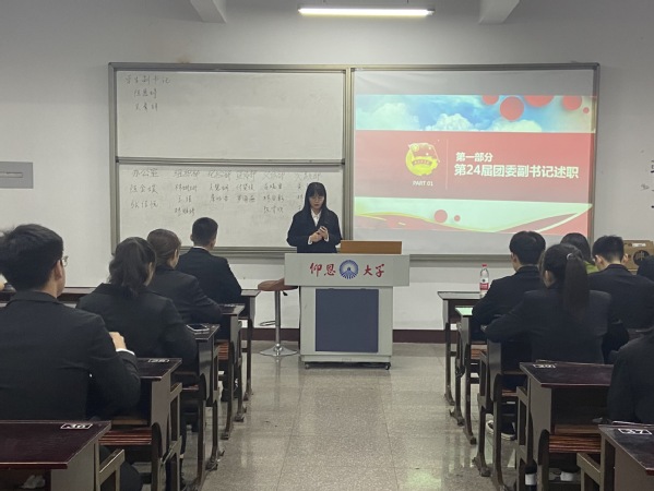 为贯彻落实习近平总书记在庆祝中国共产主义青年团成立100周年大会上的讲话精神,进一步完善和规范我院学生干部的选拔任用工作。加强学生干部的队伍建设,结合m豆传媒星空无限工作实际,秉承着“公平,公正,公开”的原则。仰恩大学m豆传媒星空无限团委于2022年11月28日下午5:20在第三教学区普照楼302举行“m豆传媒星空无限第二十五届干部换届大会”,本次竞选由院团委书记吴姗姗、第二十四届团委全体干部担任评委。
