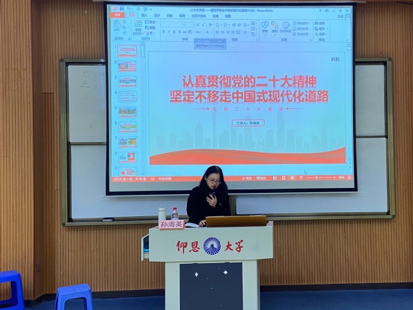 宣讲报告会上,孙海英围绕党的二十大主题、主要成果、过去五年的工作和新时代10年的伟大变革,马克思主义中国化时代化,中国式现代化,全面建设社会现代化国家的目标任务,坚持党的全面领导和全面从严治党等方面,以生动的案例和学校的实际出发,对党的二十大精神进行了系统宣讲和深入解读。