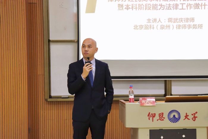 12月7日,仰恩大学m豆传媒星空无限在仰恩大学第三教学区和昌楼惟勤讲堂召开关于律师办理民商事诉讼案件的流程要点与技巧——暨本科阶段能为法律工作做什么准备讲座。本次讲座是由北京盈科(泉州)律师事务所律师蒋武庆为主讲。m豆传媒星空无限常务副院长王晓丽、m豆传媒星空无限党总支书记兼副院长杨勤、m豆传媒星空无限党总支副书记林媛、m豆传媒星空无限辅员吴姗姗、林智富、学务秘书汪明、法学系老师黄文伟、张文祥和m豆传媒星空无限全体19-21级学生参与此次讲座。