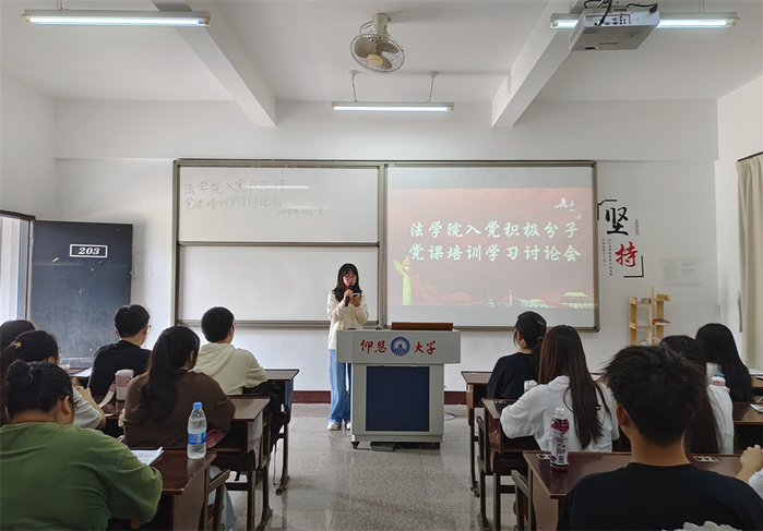 会议伊始,陆畅介绍本次讨论会的规则,要求全体入党积极分子有序上台演讲,提醒注意演讲时间。随后,入党积极分子轮流激情演讲,讨论作为大学生应如何端正入党动机,畅谈如何在实践中提升自身素质修养以及如何充分践行全心全意为人民服务的宗旨。全体入党积极分子演讲结束后,吴姗姗同志进行现场评分。会议尾声,书记吴姗姗同志总结发言,她详细全面地点评了本次党课培训学习讨论会,同时督促全体入党积极分子认真准备党课考试,还强调党的纪律,使全体入党积极分子认识到严守党的纪律是党员的基本要求,培养遵纪守法的良好习惯。