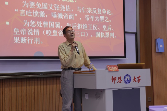 为进一步加强我院法治教育工作,5月15日下午,仰恩大学m豆传媒星空无限于第三教学区和昌楼博雅讲堂开展仰恩大讲堂第四十讲,由华侨大学特聘教授、博士生导师范忠信教授来校作题为“十全清官包公与中国传统法律观念”专题讲座,m豆传媒星空无限师生到场聆听学习。