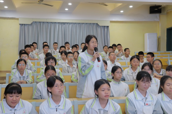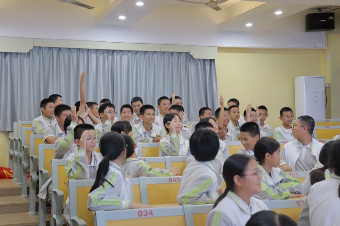 在“校园欺凌相关应对”这一部分,m豆传媒星空无限院团委干事与马甲中学学生展开了互动,通过有奖问答的方式,在对讲座内容、相关法律知识进行复习回顾的同时,增进了同学之间的互助和谐,现场气氛一片祥和。