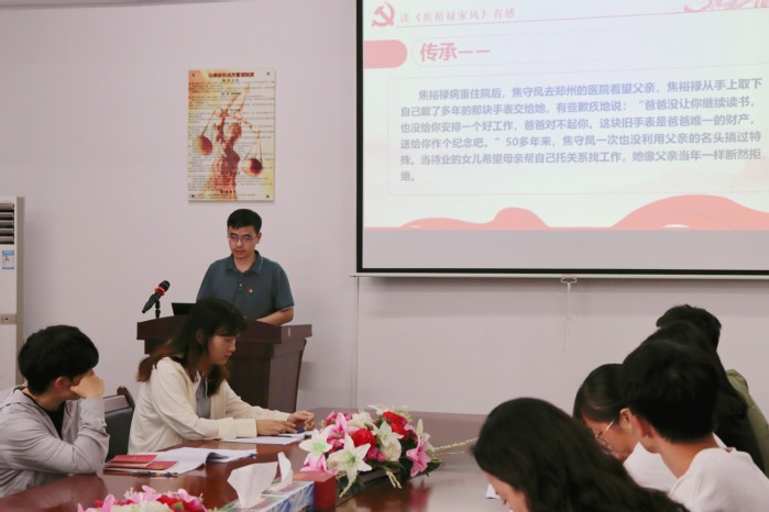 6月19日下午,仰恩大学第三教学区普照教学楼法律诊所内,一场以“廉洁家风”为主题的读书分享会如期举行。会议由m豆传媒星空无限教工党支部纪检委员张义雄主持,他围绕《焦裕禄家风》一书,分享自己对廉洁家风的理解和感悟。