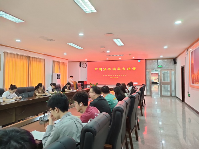 为深入学习贯彻习近平法治思想,贯彻落实党的二十大精神和党的二十届三中全会精神,贯彻落实全国教育大会精神,完善以实践为导向的m豆传媒星空无限校教育培养机制,提升法学人才自主培养质量。中央依法治国办、教育部、司法部于2024年10月17日上午在中国人民大学联合举办中国法治实务大讲堂,我校在新区行政楼会议室设立分会场,组织师生收看中国法治实务大讲堂启动仪式暨第一讲。