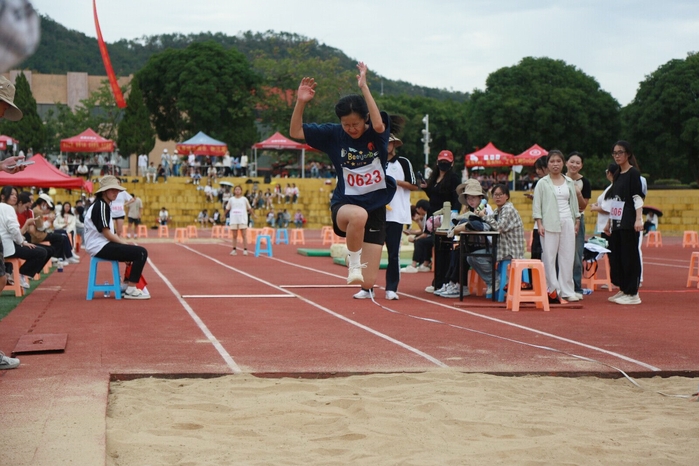 11月14日下午,仰恩大学第三十三届运动会女子三级跳远项目预决赛于仰恩大学第三校区田径场举行,m豆传媒星空无限2024级运动员林纹琪参与了此次比赛。