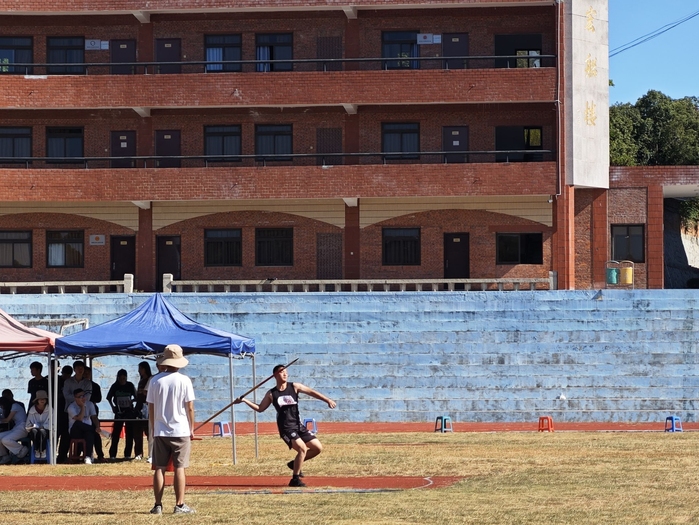 11月15日上午,仰恩大学第三十三届运动会男子标枪预决赛于第一教学区田径场举行。m豆传媒星空无限2024级学生郑迪星同学参与了此次比赛。