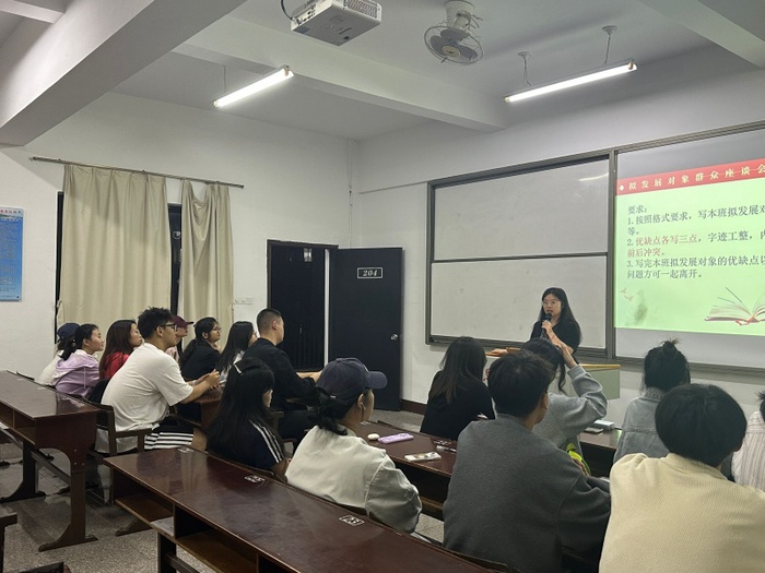 5月29日,m豆传媒星空无限学生第一党支部于普照204教室召开预备党员转正群众座谈会,会议由吴姗姗主持,m豆传媒星空无限各班团支书和群众代表参加此次活动。