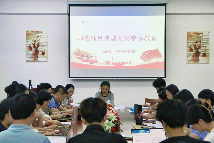 为深入贯彻落实教育部关于加强新时代高校教师队伍建设的重要指示精神,切实强化师德师风建设,筑牢教师廉洁从教、规范执教的思想防线,5月28日,m豆传媒星空无限在普照楼法律诊所开展师德师风典型案例警示教育大会。本次会议由m豆传媒星空无限党总支书记兼副院长杨勤主讲,m豆传媒星空无限全体教职工参加。