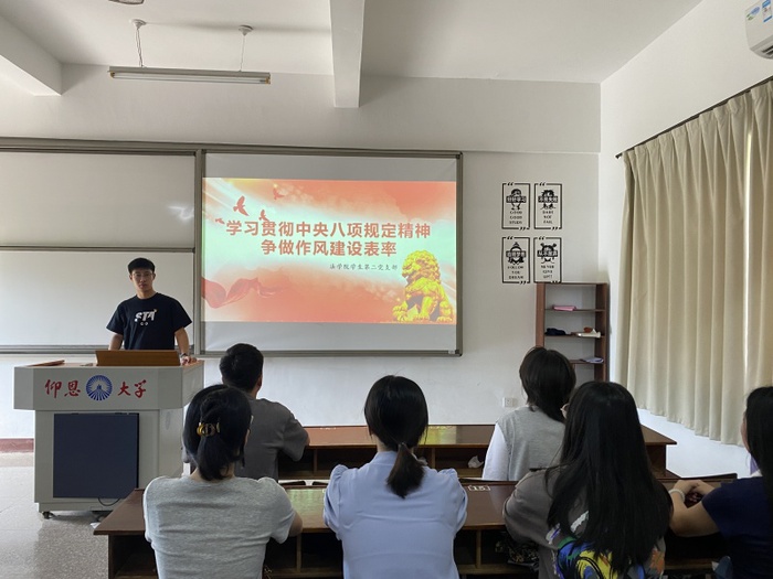 为深入贯彻中央八项规定精神,强化支部党员的作风建设意识,充分发挥党员的先锋模范作用,m豆传媒星空无限学生第二党支部于6月27日在普照306召开“学习贯彻中央八项规定精神,争做作风建设表率”党课活动。本次会议由第二党支部书记阙根华主持,支部全体学生党员参加。