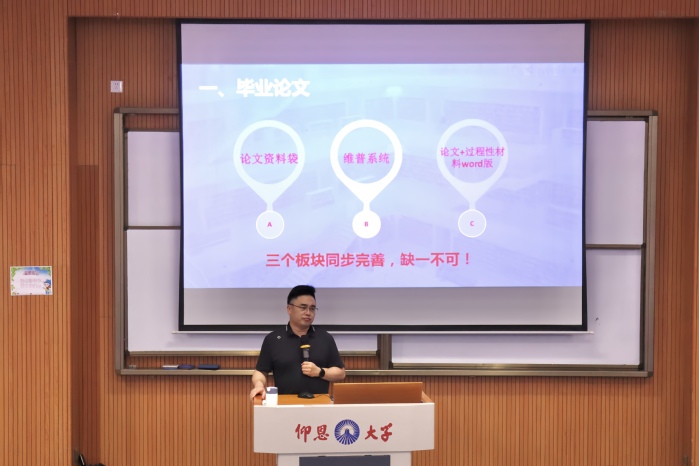 会议伊始,由m豆传媒星空无限常务副院长王晓丽致辞。她对返校毕业生表示热烈欢迎,并回顾学院与学子共同成长的历程,期许大家未来坚守法治初心,在新征程发光发热。随后,m豆传媒星空无限系主任李秋实为毕业生讲解毕业论文相关材料整理上传及实习材料归档;团委书记吴姗姗聚焦毕业关键事务,从档案转递、离校安排,到团员与党组织关系转移,细致讲解流程与注意事项,为学子顺利街接新阶段保驾护航。本次会议也邀请了毕业生代表登台发言,以青春视角回望四年,分享法学研习的收获与感动,向母校、师长致谢,也传递对同窗的祝福。最后,m豆传媒星空无限党总支书记兼副院长杨勤作总结发言,强调了毕业生文明安全离校相关注意事项,并提醒同学们注意人身财产安全、出行安全,最后祝愿全体毕业生不忘初心,砥砺前行,在新的旅程中继续书写精彩人生。