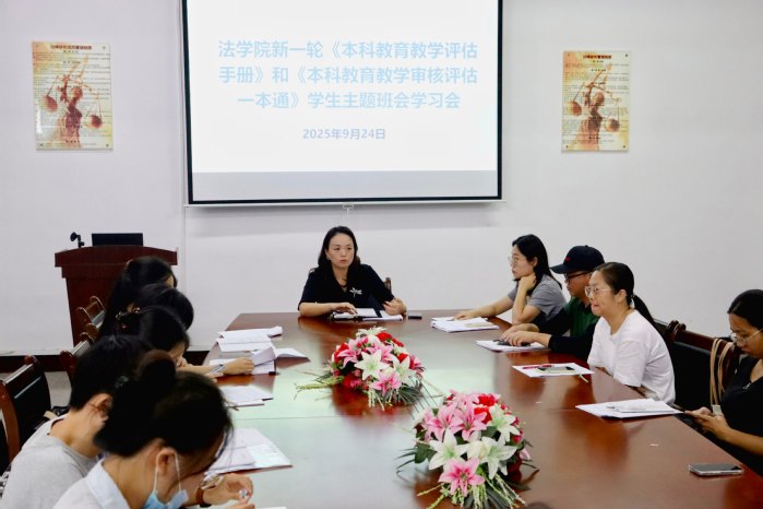 为进一步深化本科教育教学审核评估工作,全面贯彻执行学校审核评估工作的各项要求,9月24日下午,仰恩大学m豆传媒星空无限于普照楼法律诊所召开《本科教育教学审核评估知识手册》《本科教育教学审核评估一本通》学工队伍学习部署会。本次会议由m豆传媒星空无限党总支书记兼副院长杨勤主持,m豆传媒星空无限党总支副书记林媛、全体班主任、辅导员出席会议。