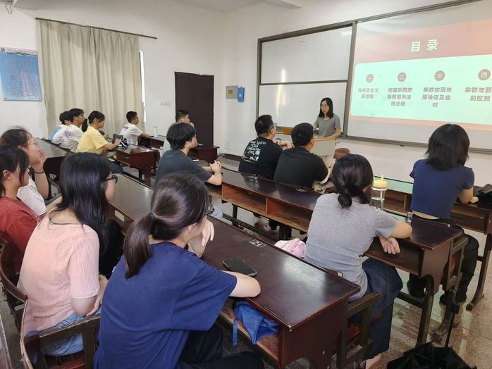 为引导青年学生正确认识宗教信仰,树立科学理性的世界观与价值观,10月15日下午,仰恩大学m豆传媒星空无限以“宗教信仰与校园安全”为核心,于普照楼302开展专题团课。m豆传媒星空无限团委书记吴姗姗为同学们深入剖析校园传教的隐蔽手段与应对方法。