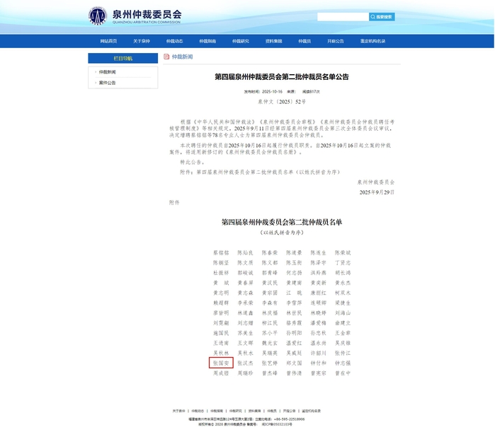 泉州仲裁委员会作为泉州地区主要的民商事纠纷仲裁机构,其仲裁员的遴选标准极为严格。张国安教授的续聘,将为仲裁委注入新的学术活力与专业智慧,有助于进一步提升仲裁工作的公信力与专业化水平。